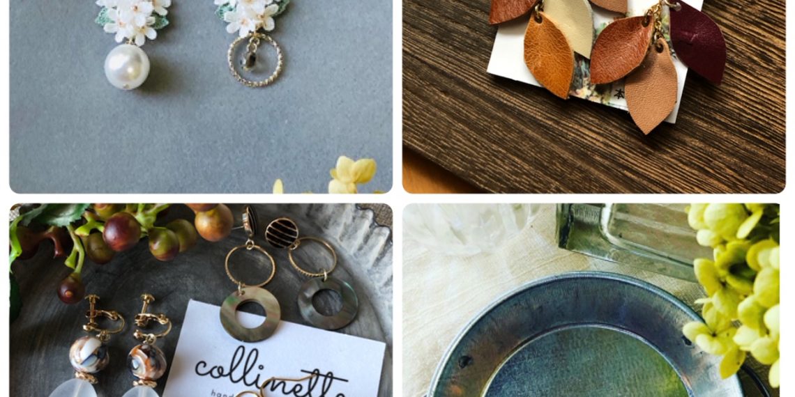丁寧に時間をかけて編み上げた小花のアクセサリーや、ウッドや天然石などを使用した自然となじむようなアクセサリー、レジン小物などをお持ちします。