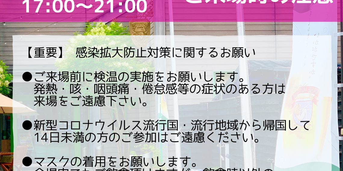 ●新型コロナウイルス流行国・流行地域から帰国して14日未満の方のご参加はご遠慮ください。